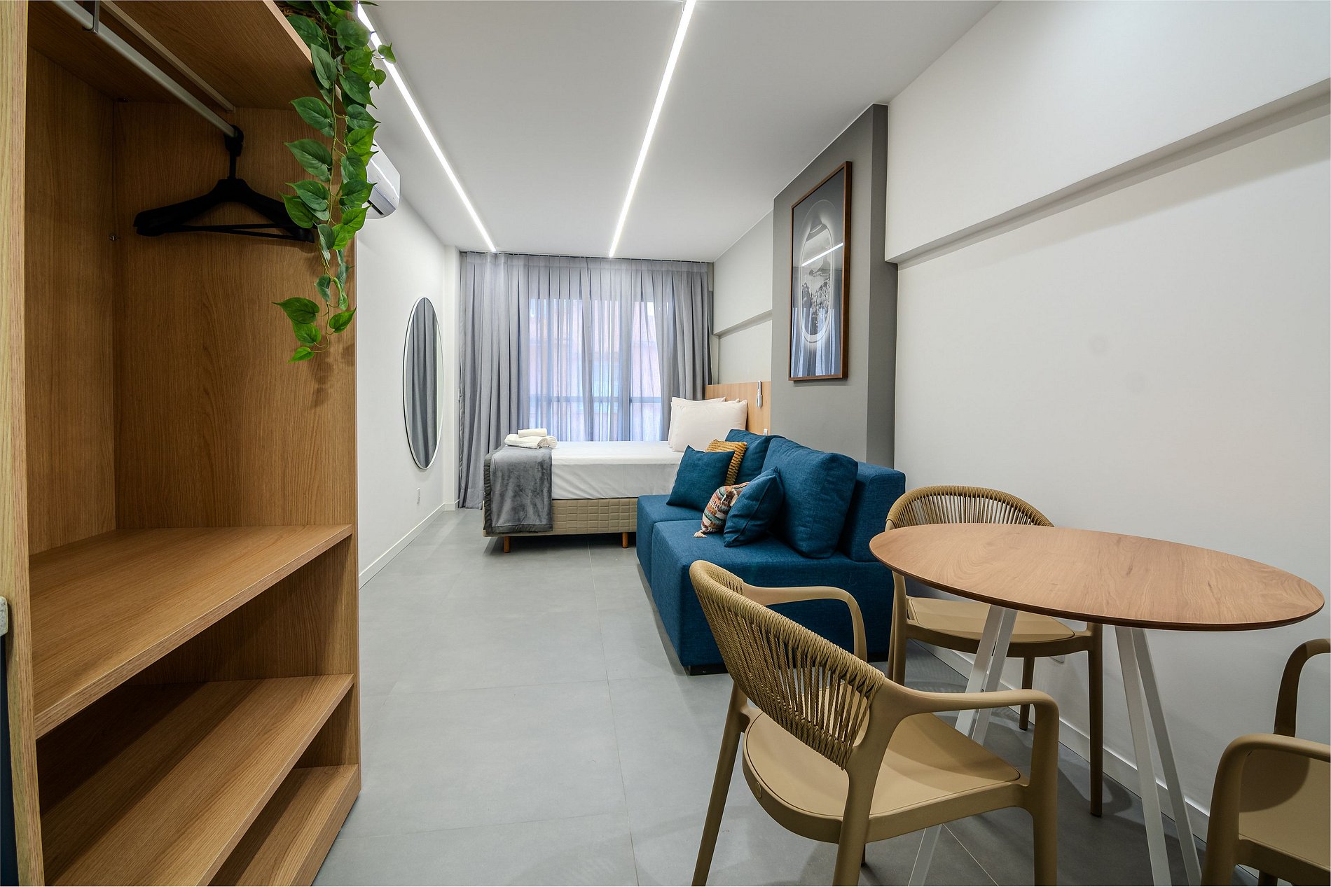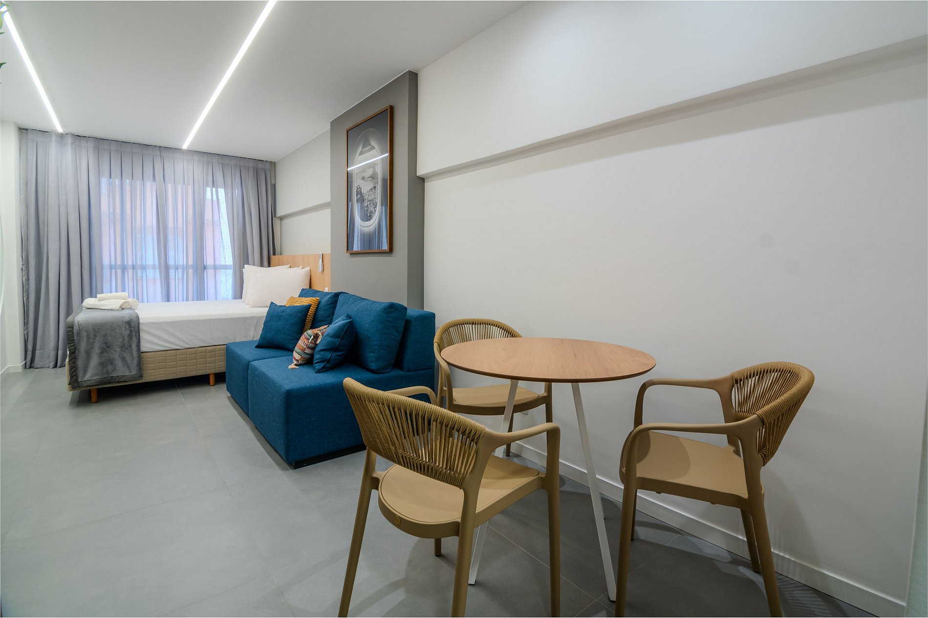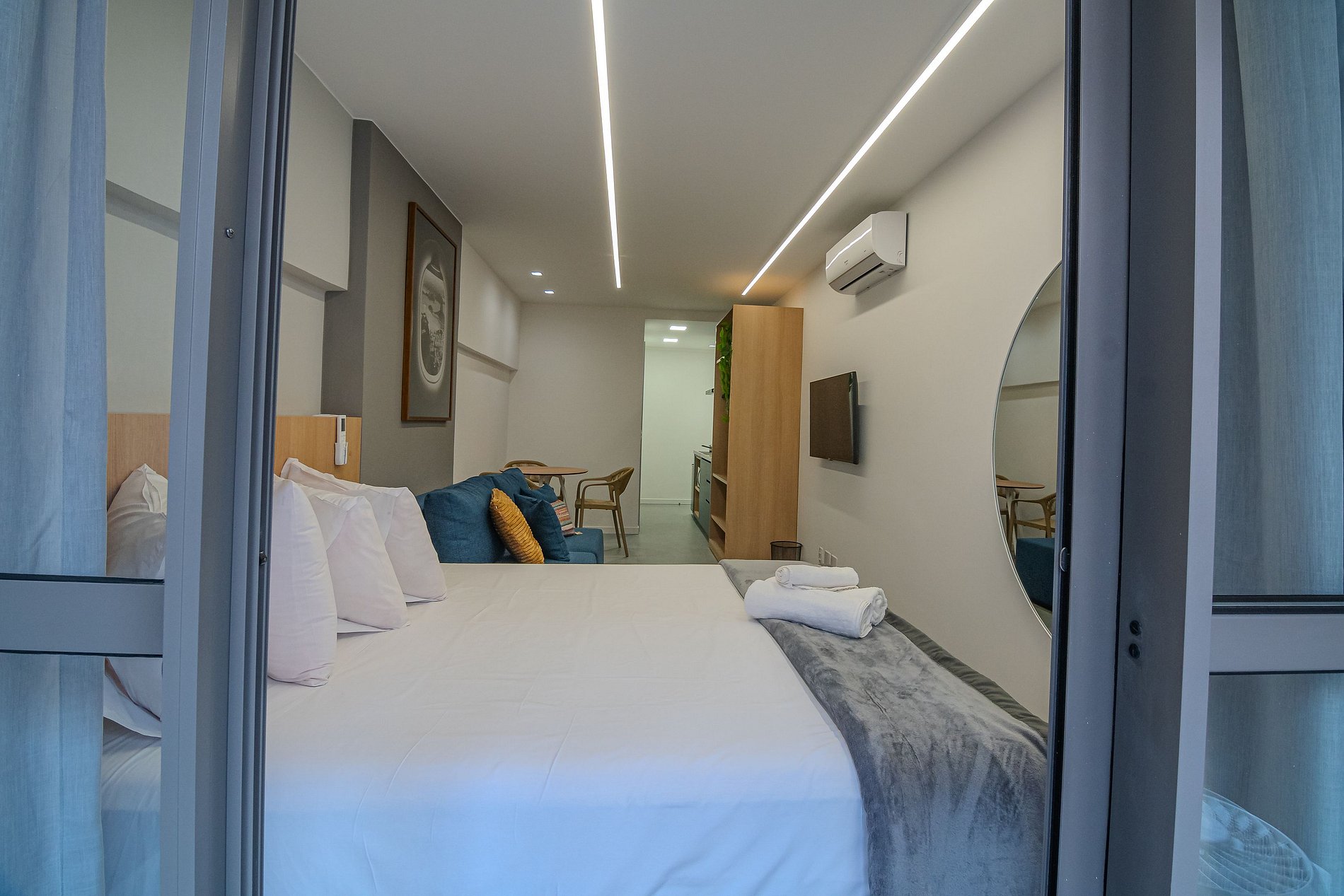 Nosso apartamento executivo foi pensado para unir conforto, praticidade e modernidade. Acomodações completas, enxoval de qualidade, cozinha equipada e internet de alta velocidade garantem uma estadia tranquila, seja para lazer ou trabalho.